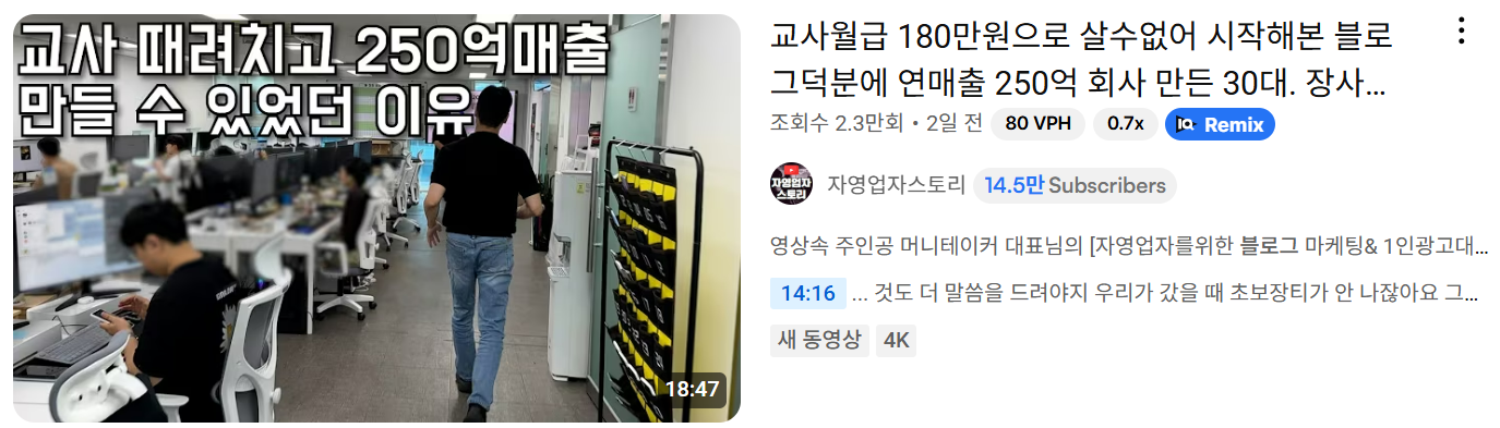 : 교사월급 180만원으로 살수없어 시작해본 블로그덕분에 연매출 250억 회사 만든 30대