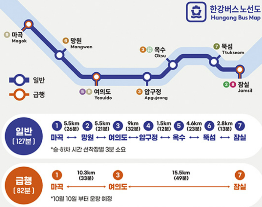 - 망원 ↔ 여의도 (5.5km / 21분)